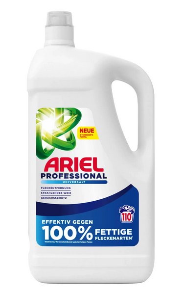 Profesionálny prací gél Ariel Universal je ideálnym riešením pre náročné pranie v domácnostiach aj profesionálnych prevádzkarniach. S obsahom 4,95 litra zabezpečí až 110 pracích dávok, čo z něho robí mimoriadne ekonomické a výkonné riešenie pre každodenné pranie.