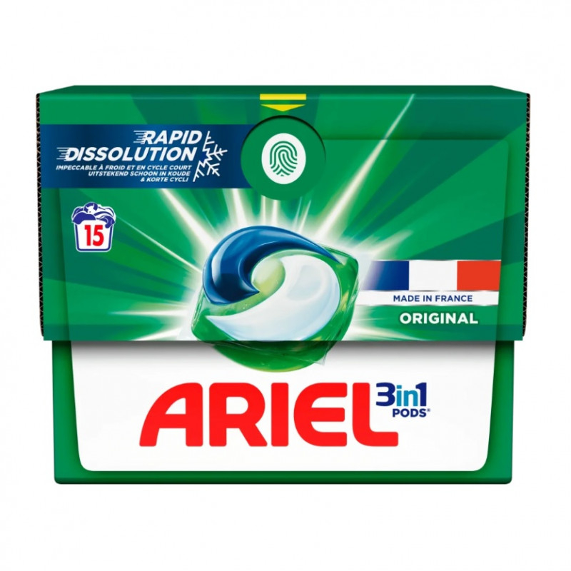 Ariel All in 1 Pods Original predstavujú praktické kapsuly na pranie, ktoré zabezpečia dôkladné odstránenie škvŕn už pri prvom praní. Vďaka koncentrovanému zloženiu pôsobia hlboko vo vláknach, chránia farby a zanechávajú bielizeň sviežu a čistú. Kapsuly sa jednoducho používajú bez potreby dávkovania – stačí vložiť priamo do bubna práčky.