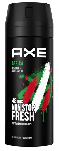 Axe Africa je exotický pánsky antiperspiračný deodorant v spreji s intenzívnou, dobrodružnou vôňou inšpirovanou africkým kontinentom. Kombinácia teplých korenistých tónov, drevených akordov a sviežich citrusových nôt vytvára jedinečnú, maskulínnu vôňu, ktorá evokuje divokú prírodu a dobrodružstvo. Poskytuje 48-hodinovú ochranu pred potom a nepríjemným zápachom - pre mužov, ktorí hľadajú vzrušenie a príťažlivosť.
