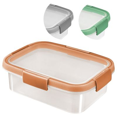 Praktická dóza s objemom 1 liter na uskladnenie potravín, polotovarov a dokonca aj hotových pokrmov. Vďaka odolnému plastu môžete dózu ukladať na horúce aj studená miesta. Vhodné do mikrovlnnej rúry, umývačky aj do chladničky a mrazničky. Špeciálne úchyty uľahčujú otváranie dóz. Výrobky majú certifikát, ktorý povoľuje kontakt s potravinami. Výber farby (mint,sivá alebo broskyňová) nie je možné ovplyvniť. Rozmery: 15x20x7 cm.