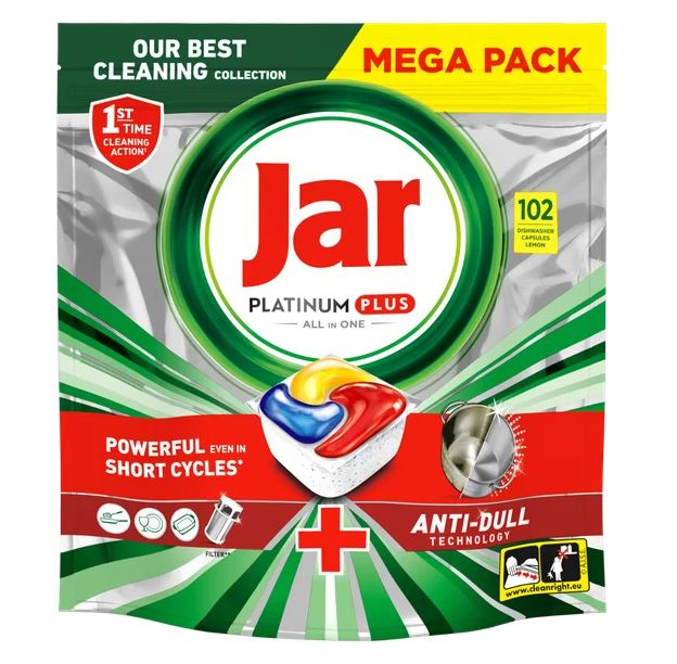 Jar Platinum Plus Lemon obsahuje špičkovú čistiacu technológiu, ktorá si poradí aj s tými najodolnejšími nečistotami. Zaschnuté omáčky, pripálené zvyšky či mastnota? Pre túto kapsulu to nie je žiadna výzva.
