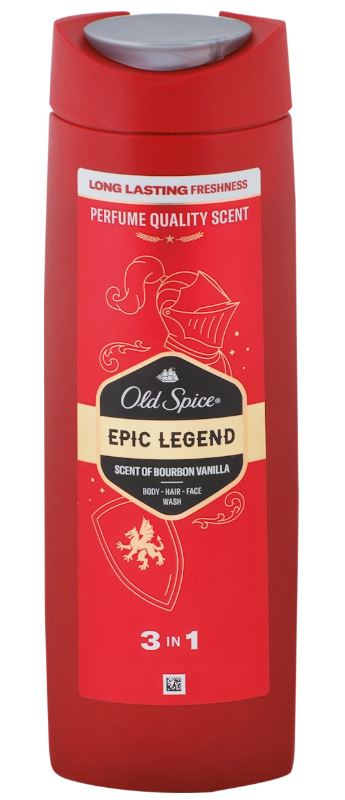 Old Spice Epic Legend je výkonný pánsky sprchový gél 3v1 s ikonickou mužnou vôňou, ktorá kombinuje sviežosť, drevo a korenisté tóny. Univerzálna formula umožňuje použitie na telo, vlasy aj tvár, takže získate komplexnú starostlivosť v jednom produkte. Legendárna vôňa Epic Legend je inšpirovaná dobrodružstvom a silou - pre mužov, ktorí žijú naplno a potrebujú praktické a účinné riešenie.
