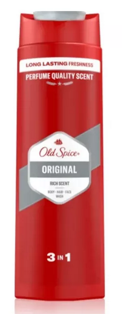 Old Spice Original sprchový gél 3v1 400 ml je multifunkčný produkt pre mužov, ktorý kombinuje sprchový gél, šampón a kondicionér v jednom balení. S klasickou a ikonickou vôňou Original (korenito-drevitá s citrusovými tónmi) poskytuje kompletné čistenie tela, vlasov aj fúzov. Účinne odstráňuje nečistoty, nevysušuje pokožku a zanecháva dlhotrvajúci pocit sviežosti a mužnosti.