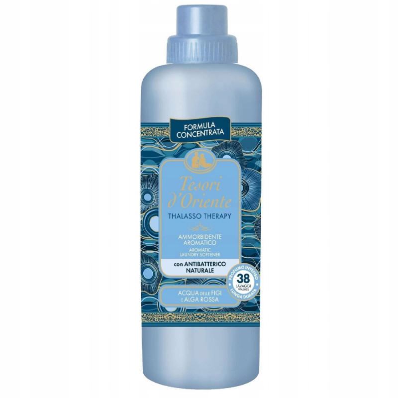 Tesori d'Oriente Thalasso Therapy je luxusná koncentrovaná aviváž, ktorá prináša do vašej domácnosti sviežu vôňu mora. Jej jedinečná formula obsahuje prírodné mikrokapsuly, ktoré postupne uvoľňujú osviežujúcu arómu citróna, bergamotu, mandarínky, morských rias, šalvie a levandule.